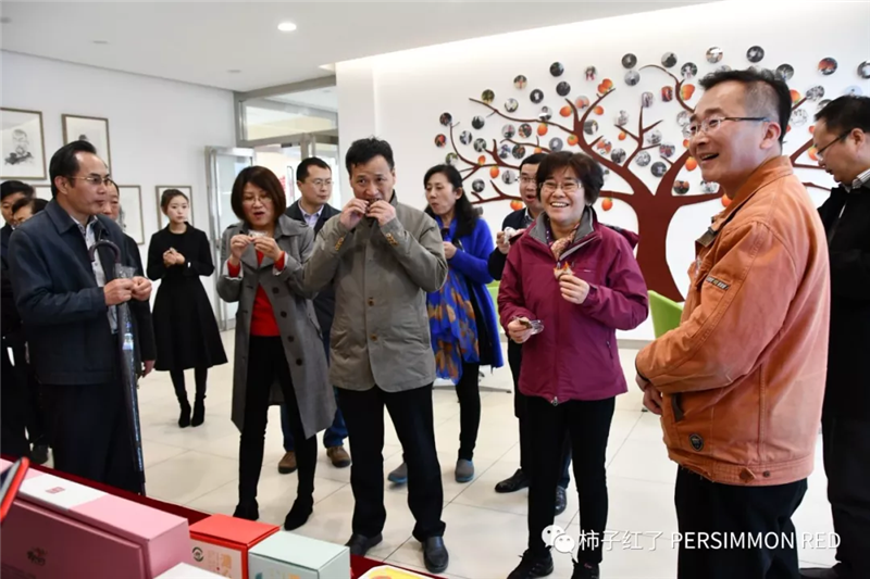 剛到廠門口,就受到了富平永輝全體工作人員的熱烈歡迎。黃立紅一行興致勃勃地走進(jìn)廠區(qū),聽取專業(yè)人員的講解和柿子產(chǎn)品的介紹、并品嘗了公司旗下的“柿子紅了”“柿餅+核桃”等產(chǎn)品,嘖嘖稱贊味道好極了。