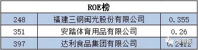 三鋼閩光、安踏體育、達(dá)利食品上榜ROE榜。凈資產(chǎn)收益率代表著股東權(quán)益的收益水平,用以衡量公司運(yùn)用自有資本的效率。ROE值越高,意味著股東的投資所創(chuàng)造的利潤(rùn)越多。