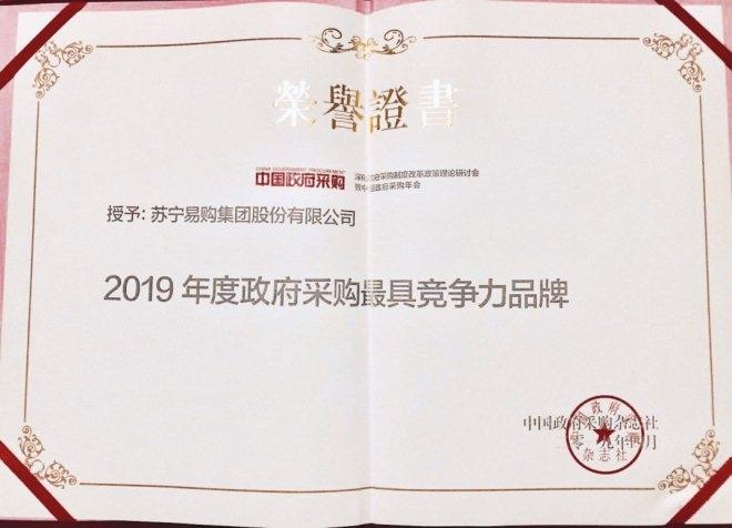 4月23日,蘇寧大客戶榮獲“政府采購最具競爭力品牌”獎