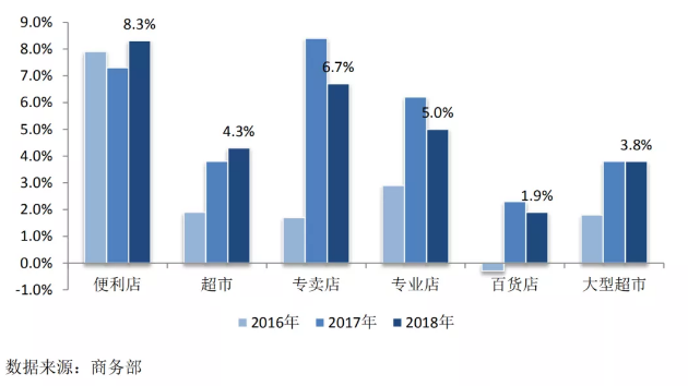 圖/2016-2018年商務(wù)部零售業(yè)典型統(tǒng)計(jì)調(diào)查分業(yè)態(tài)增速