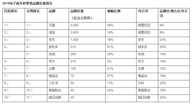 2019胡潤品牌榜200強:天貓第三 海底撈上榜