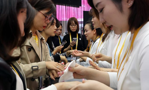 第二屆進(jìn)博會品質(zhì)生活展區(qū),參觀者在護(hù)膚品展臺體驗(yàn)最新產(chǎn)品。新華社圖。