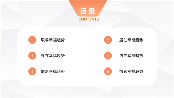以剛剛過去的2020年“雙11”為例,報告顯示,為了在工作、家庭和自我三個層面提升幸福度,中國消費者的消費行為,呈現(xiàn)出6大新趨勢——職場幸福趨勢、居住幸福趨勢、外在幸福趨勢、內(nèi)在幸福趨勢、健康幸福趨勢、情感幸福趨勢。