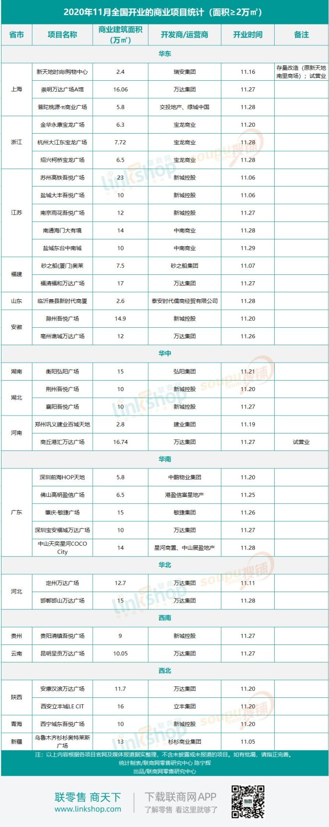 附:2020年11月新開商業(yè)項(xiàng)目統(tǒng)計(jì)表