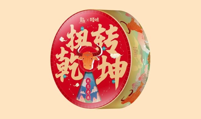 為迎接牛年,百草味聯(lián)合國(guó)家寶藏推出了以青銅亞長(zhǎng)牛尊為創(chuàng)意的“扭轉(zhuǎn)乾坤”禮盒,“扭轉(zhuǎn)乾坤”禮盒采用立體牛頭旋轉(zhuǎn)的創(chuàng)意設(shè)計(jì),盒蓋為天、盒身為地,當(dāng)快速轉(zhuǎn)動(dòng)牛頭時(shí),整個(gè)盒身會(huì)呈現(xiàn)出圣牛奔跑的畫(huà)面,寓意牛氣沖天、轉(zhuǎn)動(dòng)乾坤,轉(zhuǎn)出新年好運(yùn)氣?!岸鄬毢小倍Y盒則以“四牛鎏金騎士銅貯貝器”為創(chuàng)意來(lái)源,盒身取自古代多寶盒形制,運(yùn)用巧妙的收納設(shè)計(jì),象征古代人的聚寶盆,寓意天下美好盡匯一堂,聚集好運(yùn)好財(cái)好果,守護(hù)一整年的好福氣。百草味與國(guó)家寶藏的聯(lián)名,將國(guó)寶的美好寓意搬進(jìn)產(chǎn)品中,為年禮賦予深厚的文化內(nèi)涵,是百草味深挖傳統(tǒng)年味的創(chuàng)新一步。