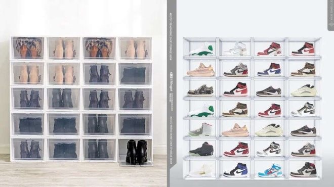 這些打著“高透”、“環(huán)視無障礙”的亞克力鞋盒,堆砌出直男們夢寐以求的鞋墻——與傳統(tǒng)的收納心態(tài)不同,鞋墻要把每一雙鞋都展露出來,用“規(guī)模化”效果滿足自己在收藏中獲得的快樂。