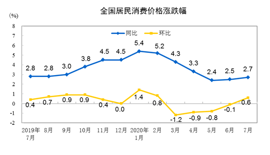 國家統(tǒng)計(jì)局:7月份居民消費(fèi)價(jià)格同比上漲2.7%