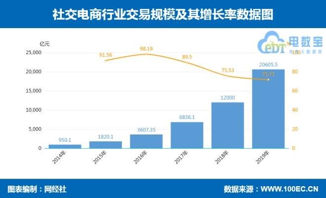 去年我國社交電商交易規(guī)模為20605.5億 增速下滑