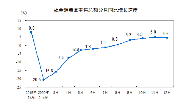 2020年12月份社會(huì)消費(fèi)品零售總額增長4.6%