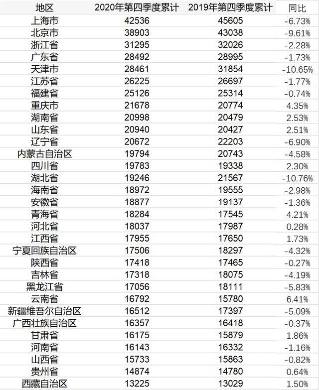 2020年,共有11個(gè)省份的居民人均消費(fèi)支出超過2萬元,分別是上海、北京、浙江、廣東、天津、江蘇、福建、重慶、湖南、山東和遼寧。 ...