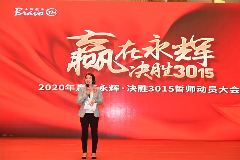 永輝超市一區(qū)總經(jīng)理陳穎就此次3015營銷活動做戰(zhàn)略分享。她回顧了2019年與四戰(zhàn)區(qū)PK的數(shù)據(jù)情況,從銷售額、毛利額、毛利率、門店利潤額等各個方面全面分析,尋找新的機會點。同時,分析了內(nèi)外的環(huán)境的變化,根據(jù)實際環(huán)境情況部署作戰(zhàn)計劃,她定目標(biāo),講策略,給信心。她表示,我們要夯實主業(yè)的同時,創(chuàng)新業(yè)務(wù)要齊頭并進,讓永輝超市一區(qū)取得新的一輪的騰飛。