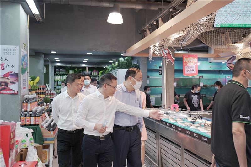 調(diào)研中,王炳南副部長深入了解了永輝超市內(nèi)蔬菜、糧油、肉蛋等民生商品貨源、價(jià)格、及銷售情況,并對永輝超市為滿足居民日常生活基本消費(fèi)和品質(zhì)消費(fèi)需求,豐富社區(qū)商業(yè)業(yè)態(tài)所做的努力和貢獻(xiàn)表示肯定,并組織全國各省市商務(wù)主管部門廳局代表到現(xiàn)場考察。