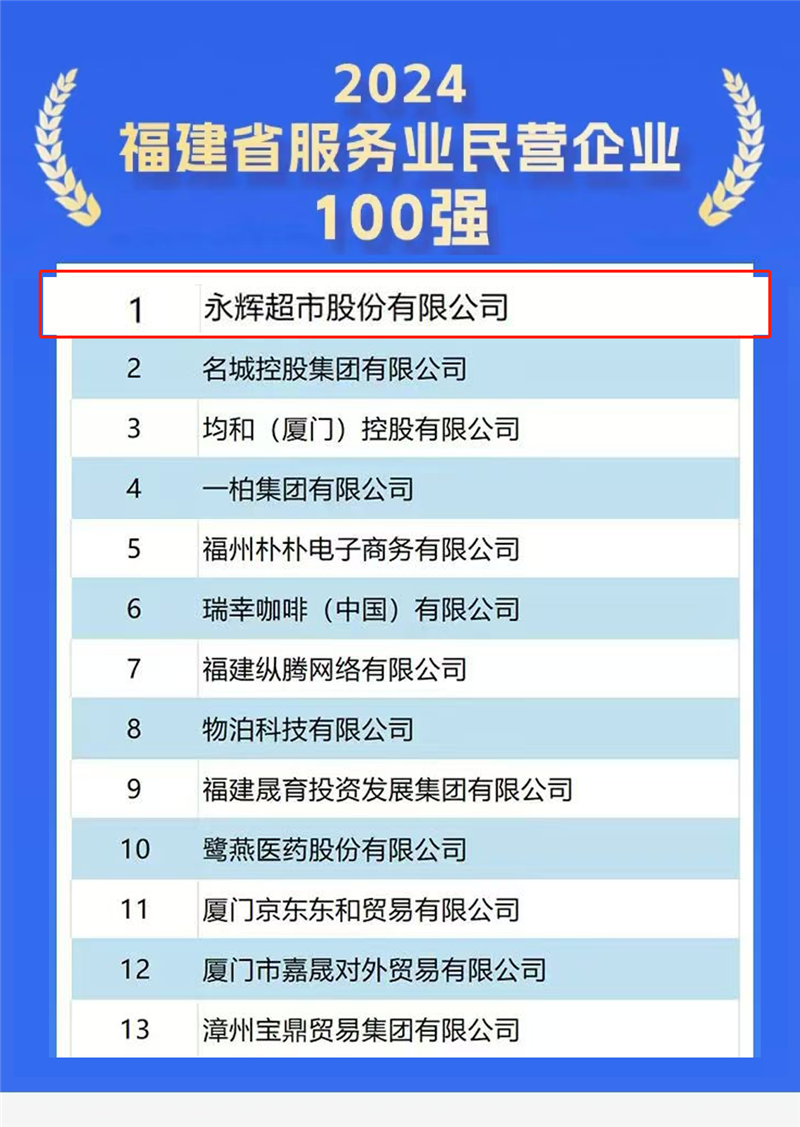 永輝超市連續(xù)7年蟬聯(lián)福建民營企業(yè)100強