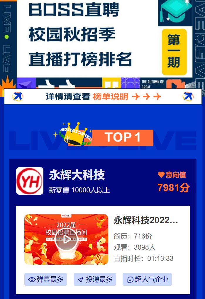 線上招聘成新趨勢,永輝獲“校園秋招季直播榜”第一
