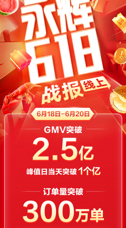 永輝618戰(zhàn)報:GMV破2.5億,線上訂單突破300萬單