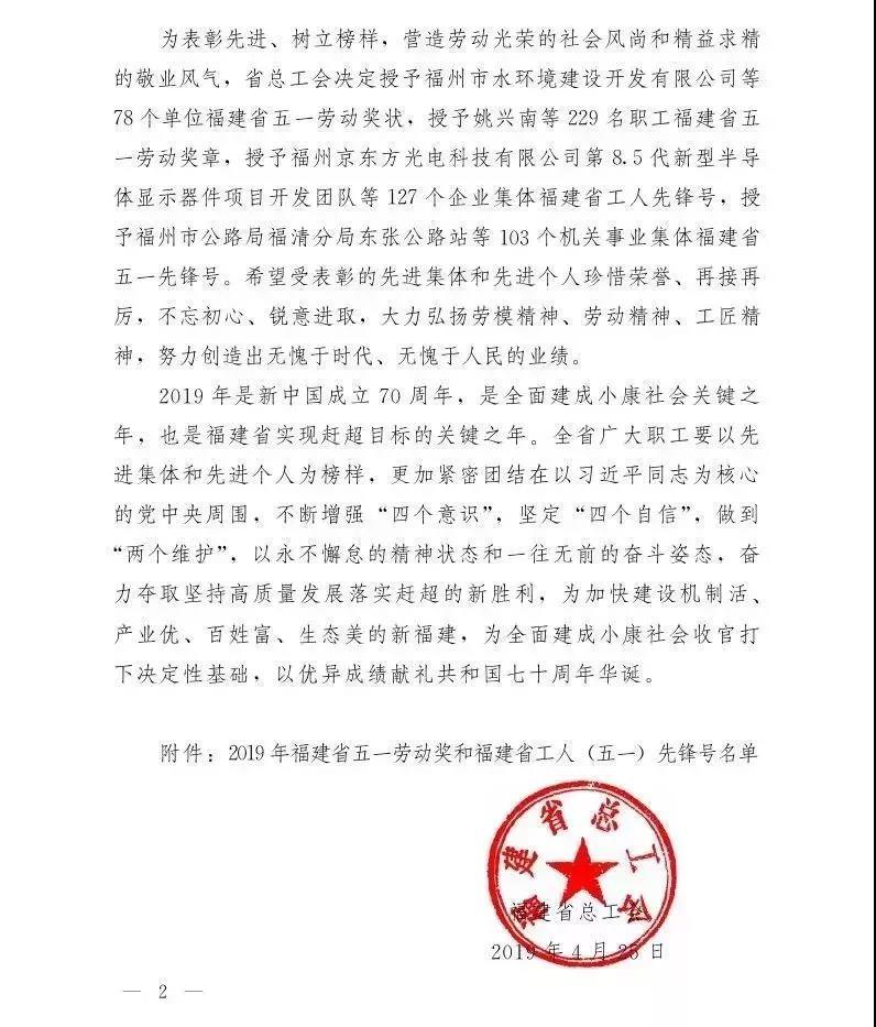 2019年福建省五一勞動獎先進集體與個人名單