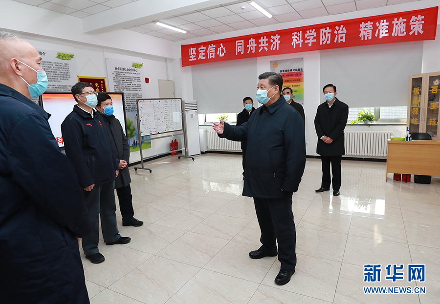 2月10日,中共中央總書記、國(guó)家主席、中央軍委主席習(xí)近平在北京調(diào)研指導(dǎo)新冠肺炎疫情防控工作。這是習(xí)近平在朝陽(yáng)區(qū)安貞街道安華里社區(qū),了解基層一線疫情聯(lián)防聯(lián)控情況。 新華社記者 龐興雷 攝