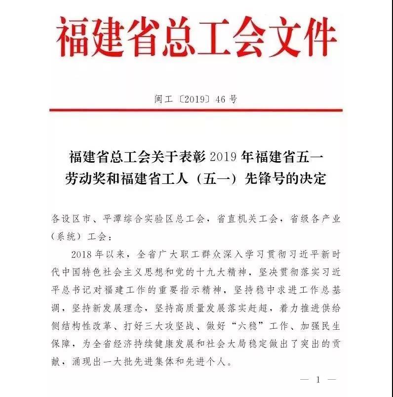 重磅!2019年福建省五一勞動(dòng)獎(jiǎng)先進(jìn)集體與個(gè)人名單