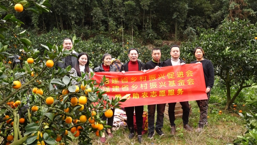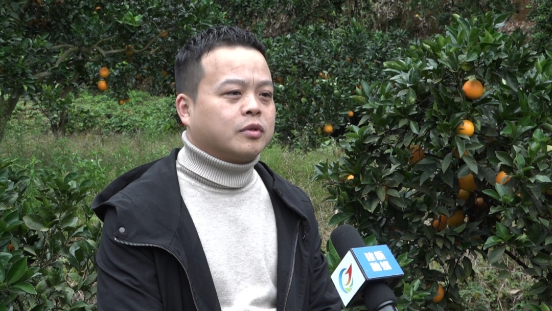 果園里橙香四溢,黃澄澄的臍橙掛滿枝頭,工人們嫻熟的將臍橙摘下。果樹(shù)下,幫助朱招弟與永輝牽線搭橋的愛(ài)心人士游厚壽也來(lái)看望朱招弟一家。